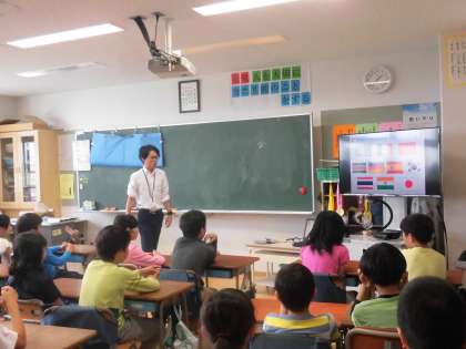 英語活動の研究授業がありました。国旗に親しみながら、英語を学習しました。