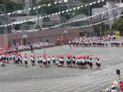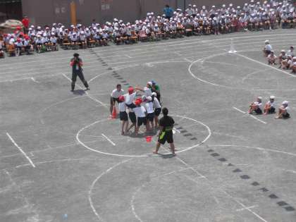 5,6年生の騎馬戦と、3,4年生の棒引きの様子です。