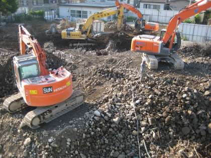 夏休み中に、旧校舎の解体工事はほぼ終了いたしました。校舎があったところは、平らな地面になってしまい、寂しい気持ちです。今後は、くい抜きなどの基礎の部分の工事に移ります。近隣にお住まいの方には、振動、ほこり、騒音等で大変ご迷惑をおかけし、申し訳ありません。ご理解のほどよろしくお願いいたします。