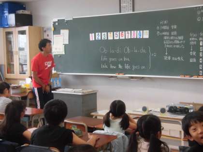 6月から木曜日の朝の時間は英語タイムになりました。全校で10分間、英語に親しむ時間になりました。