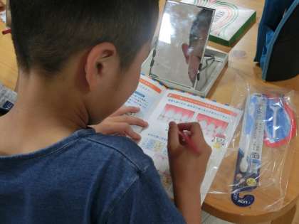 4年生が全国小学生歯みがき大会に参加しました。歯みがきの仕方や歯と口の健康について学習しました。