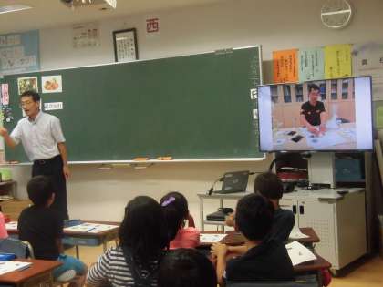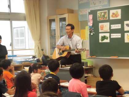 3年の大門学級で研究授業がありました。担任の先生が一人でAll Englishで行われました。子どもたちも先生もノリノリでとても楽しい授業になりました。最後は大門先生がギターを弾いてみんなで英語の歌を歌いました。「アンコール、アンコール」とせがまれました。