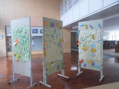 いちょうホールに、みんなの願いを込めた短冊が飾られています。代表委員会を中心に飾りも作って育くれました。今夜はあえるかな〜