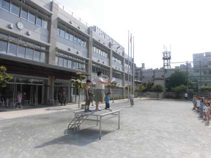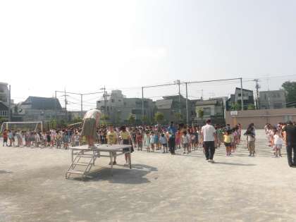 今週の全校朝会では、校長先生の講和のあと、表彰がありました。校長先生からは、「土曜日の三宅さんを見習って、残り少ない1学期をしっかりがんばってほしい」とお話がありました。