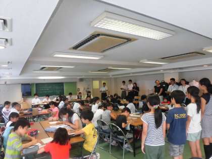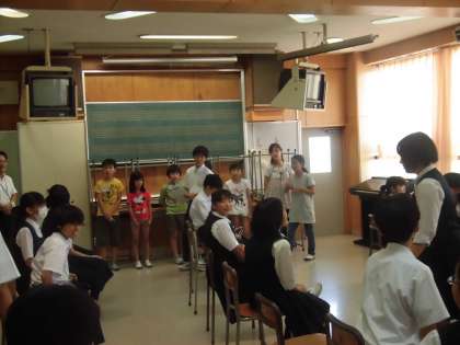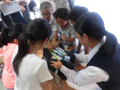 学び舎の3校の小学校が緑丘中学校に集まって、学校見学をしたり、中学校の生活についての話を聞いたりしました。