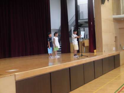 1学期の終業式があり、校長先生のお話しや児童代表の言葉、夏休みの生活の注意などがありました。安全で楽しい夏休みににしましょう!