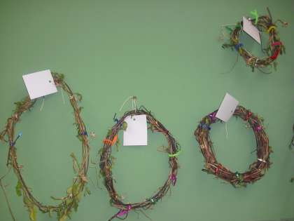春から一生けんめいに世話をして、大切に育ててきた、あさがお。夏休みにはたくさん花をさかせ、種もできました。2学期には、学校で種取りをした後、つるでリースを作りました。支柱にぐるぐると巻き付いたつるを外すのは苦戦していましたが、色々な色のモールできれいにかざりつけました。