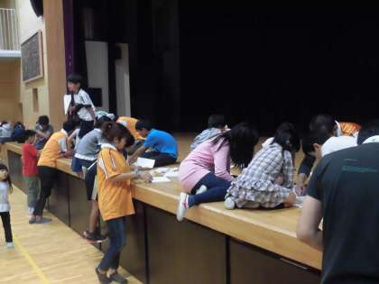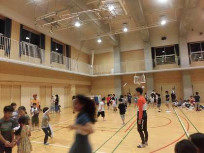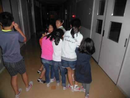 真っ暗の校舎を校内パトロールしたり、紙飛行機を飛ばしたりと、夜の学校を満喫しています。