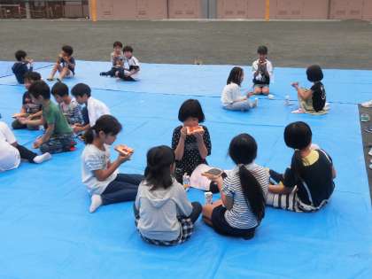 子供たちは元気に朝を迎えました。ラジオ体操のあとはお待ちかねの朝食です。この後、閉会式でおしまいです。お疲れさまでした。