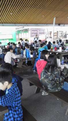 田園プラザでお弁当を食べています。この後は買い物体験です。