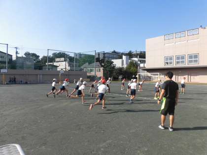久しぶりのお日様ですね。朝から6年生は連合運動会に向けてリレーの練習をしていました。また、避難訓練では、上北沢公園へ2次非難しました。