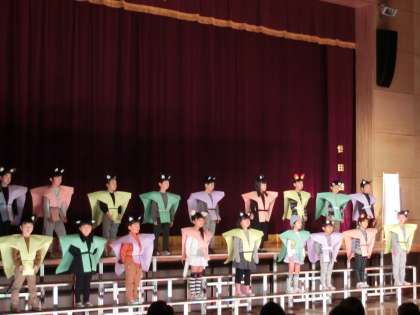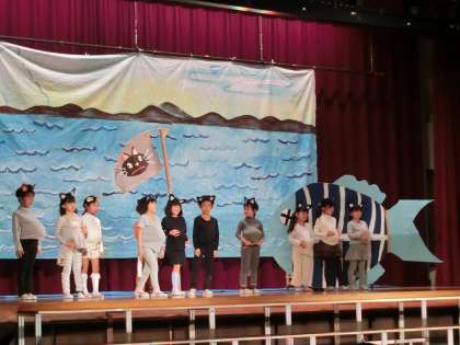 1年生は「11ぴきのねこ」を演じました。初めての学芸会、がんばりました!