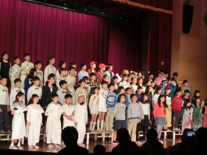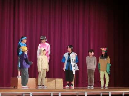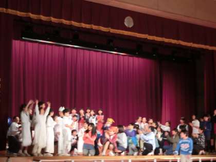 5年生は、「5年生だよ。全員集合!」を演じました。5年生の子たちにぴったりの劇でした。元気いっぱい思いっきり表現しました。