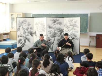 5年生が三味線体験をしました。普段はなかなか聞けない音だけに、貴重な体験でした。ありがとうございました。