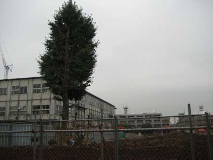 学校の塀の撤去もほぼ終了し、旧校舎の後はさら地になっています。本校のシンボルツリーであるいちょうの木がポツンと立っています。このいちょうの木は、開校当時からある大切な木です。新校舎の建物と重なってしまうため、移植をしていただくことにしました。移植に耐えられるように、かなり枝を落とさなくてはなりません。心が痛みますが、大切な木を残すためにやむをえません。また、元気に育ってくれることと思います。工事の影響がない校庭の西側に移植する予定です。