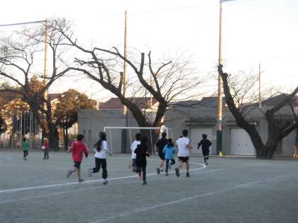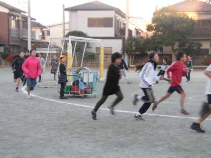 17日のこども駅伝に向けて、みどりの学び舎チームが八幡山小に集まりました。顔合わせのあと、グランドをみんなで走りました。