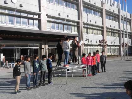 全校朝会で、各表彰がありました。野球、サッカー、駅伝の子どもたちが優秀な成績を修めました。