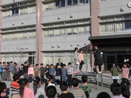 今朝の全校朝会は、校長先生から「雪」についてのお話がありました。自然に目をむけられるとよいですね。また、サッカーの表彰がありました。