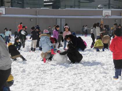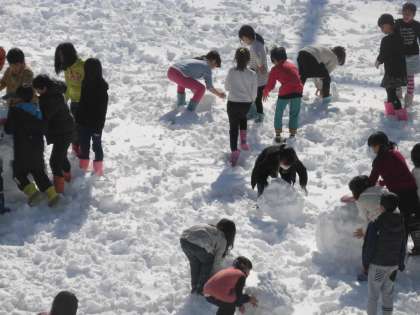 中休みは、みんなで遊びの約束を確認して雪遊びをしました。めったにない大雪を満喫しました。