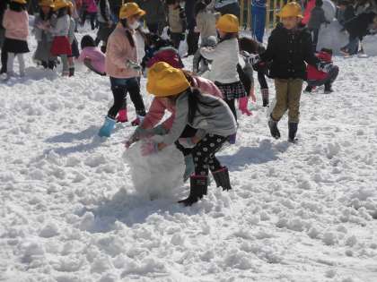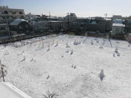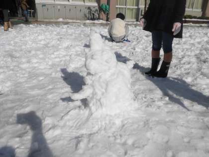 校庭には、思い思いの雪だるまが並んでいます。かわいいですね!
