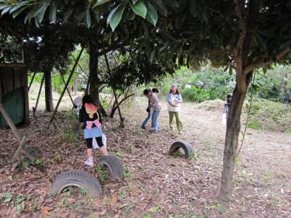 ゴール地点の烏山区民会館前広場にたどりついた後は、もぐら公園で秋さがしです。