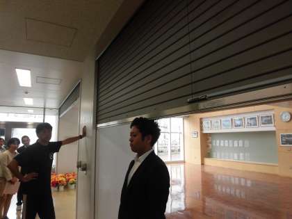 災害時等の対応訓練を教職員全員で行いました。防火シャッターや、緊急通報装置について研修をしました。