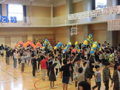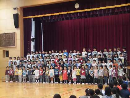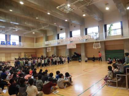 1年生を迎える会がありました。各学年からのプレゼントや出し物がありました。