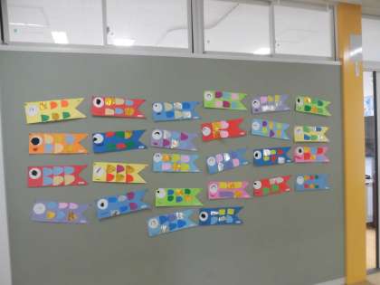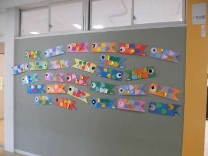 早いもので、明日からGW。子どもたちが次に登校するのは5月ということになります。1年生の廊下掲示は、こいのぼりになっています。なんだかわくわくしますね。