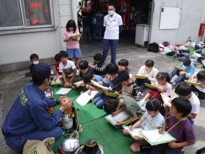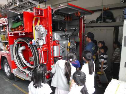 4年生が消防署見学に行ってきました。本物の消防車や機材をみたり、隊員の方のお話を聞いたりしてきました。