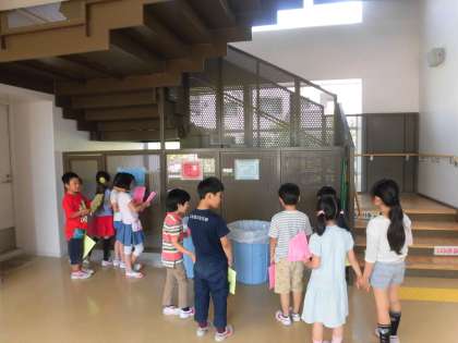 1、2年生が学校探検をしました。2年生のお兄さんお姉さんが、1年生の子たちを案内してくれました。頼もしいですね!