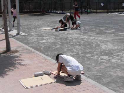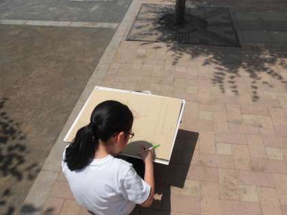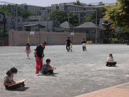 5年生は、校庭に出て校舎などの写生に取り組んでいます。
