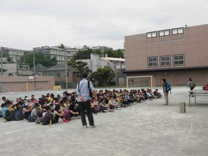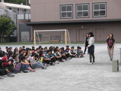 閉会の様子です。何人かの子供たちが感想を発表しました。たくさんの先生方がお出迎えです。