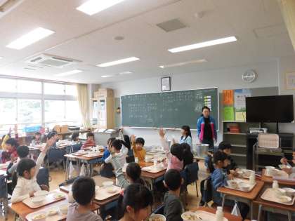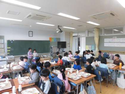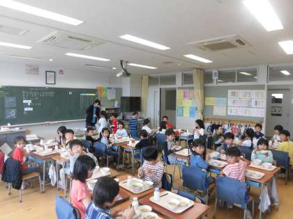 2年生の給食の様子です。みんなお行儀よく待っていました。