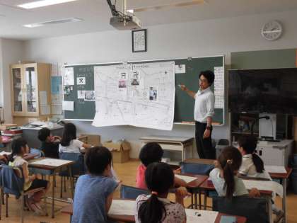 地図記号の学習をしました。神社やお寺、郵便局などの馴染みのある記号から、銀行などの難しい記号まで勉強しました。