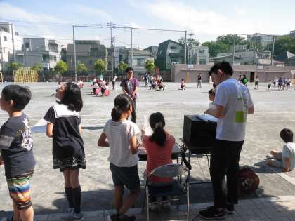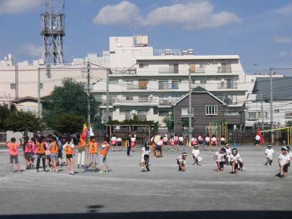放送係りと校庭の様子です。応援団も本当にがんばっています。
