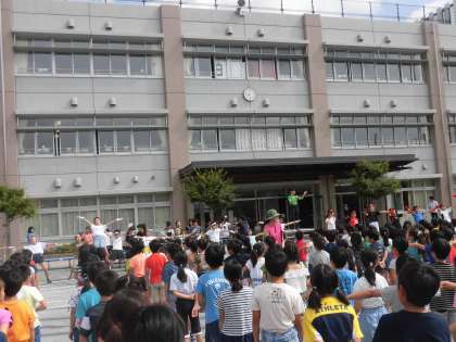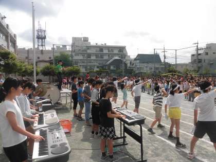 今朝は、全校で歌の練習をしました。応援団が前に出て、リードしてくれました。音楽係の生演奏で、元気に歌うことができました。