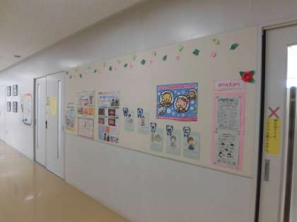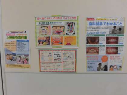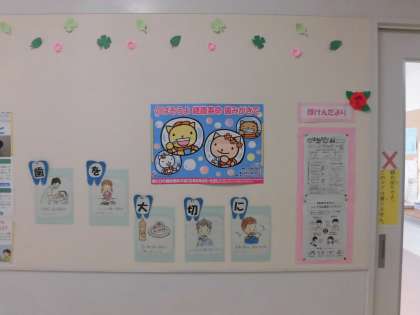 保健室前の掲示版には、歯や口に関するポスターなどがはってあります。ぜひ、参考にしてみてください。
