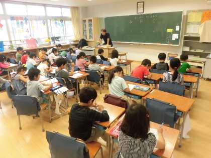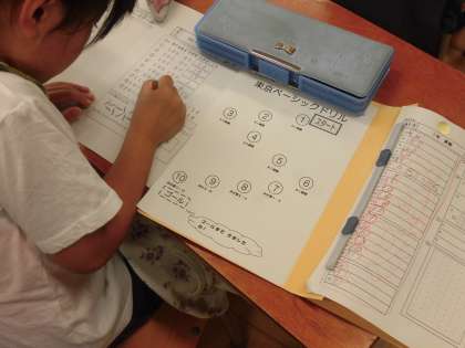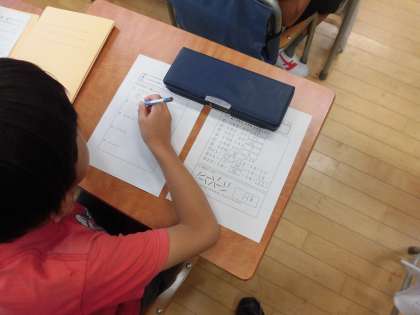 今朝は、計算マスターです。今年度から、全校朝会は月に1回になりました。
