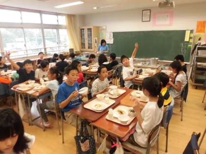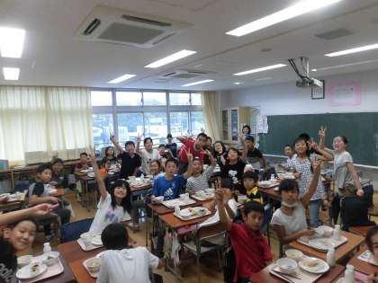 給食シリーズ第4弾は、5年生です。カメラを向けるといい笑顔を見せてくれました。心の状態がよいときや、解放されているんですね。