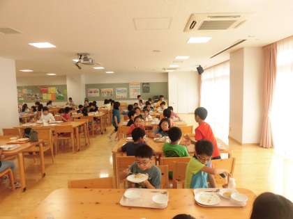 今週の4年生は、ランチルーム給食です。学年で仲良く食べていました。