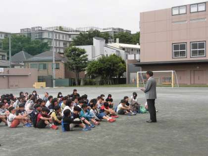区の古典鑑賞教室がありました。狂言を違う学校の6年生と一緒に鑑賞します。