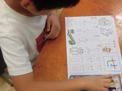 ひらがなの学習をしていました。丁寧にしっかりと書けていました。