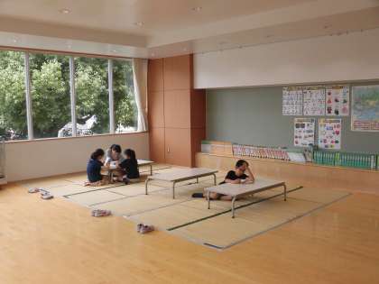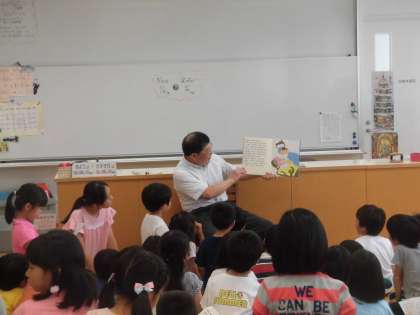 昨日の昼休みの様子です。図書室では、野田先生による読み聞かせがありました。図書委員会の子たちも受付をしていました。あわせてもみじホールの様子です。