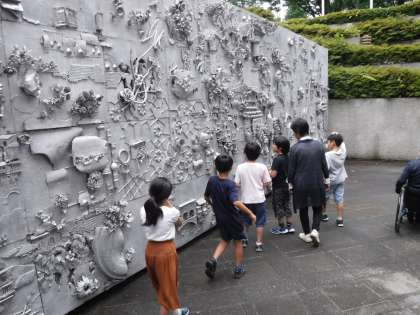 館内の作品を観たり、外の彫刻に触れたりしました。