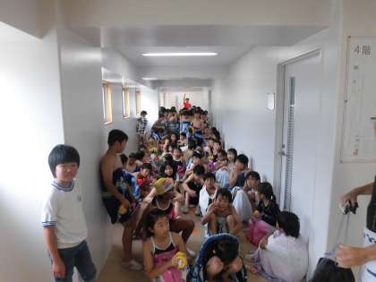 4年生もプール開きでした。写真が間に合わず、教室に帰るところをパチリ!