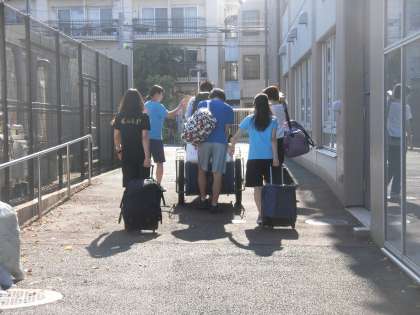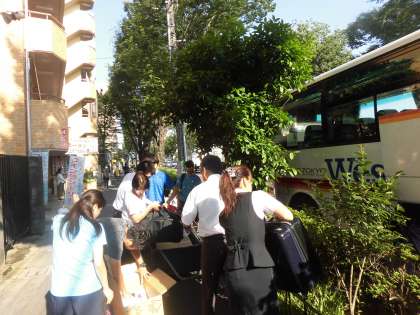 見送りに来てくれた先生方が、荷物をバスに運んでくれました。朝早くからご苦労さまです。