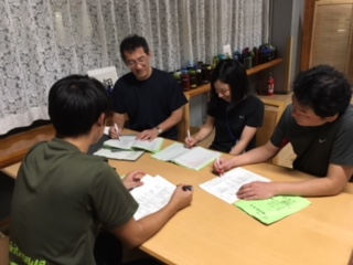 大門先生の顔がなごやかなので、今のところ叱られていないようです。今日の反省と、明日の雨対策などが話し合われました。