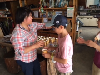 りんご農家で、りんごジュースをいただきます。生き返る〜