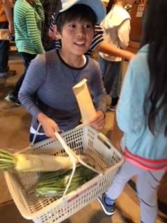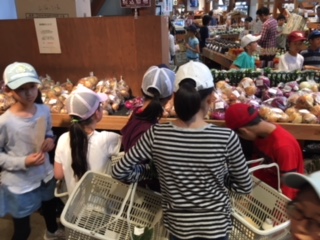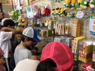 キーホルダーに群がる人々と、大根を一本買う人。大根が意外な人気。