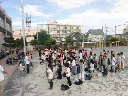 お互いのがんばりをたたえ合い、拍手拍手でした。子どもたちも先生方も頑張りました。先生方は、何時間寝られたか心配です・・・大人も子供も今日は、ゆっくり休んでください!